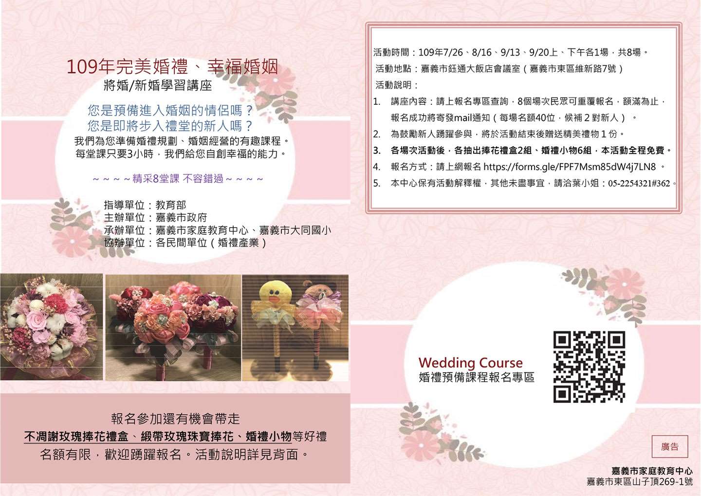(五)全程參與者將贈送精美婚禮小物1份。各場次活動後,各抽出捧花禮盒2組、婚禮小物6組,本活動全程免費。