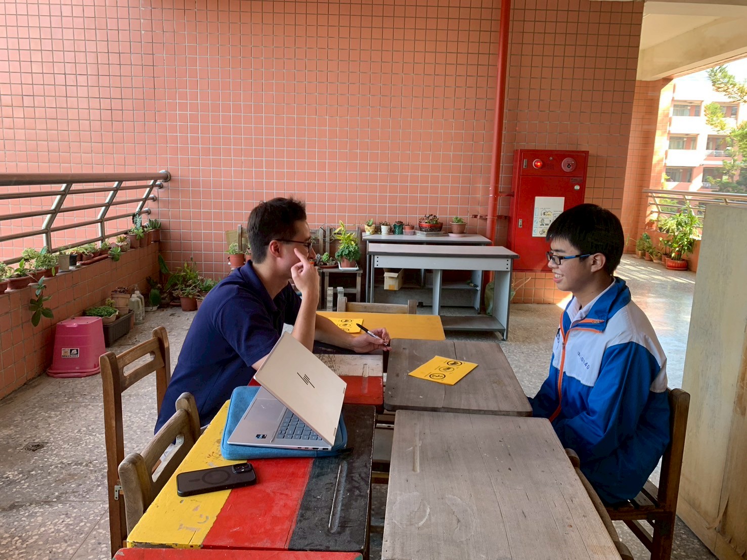 Students talk with Teacher Ian about their weekend activities, Australia, United States and United Kingdom during the break.