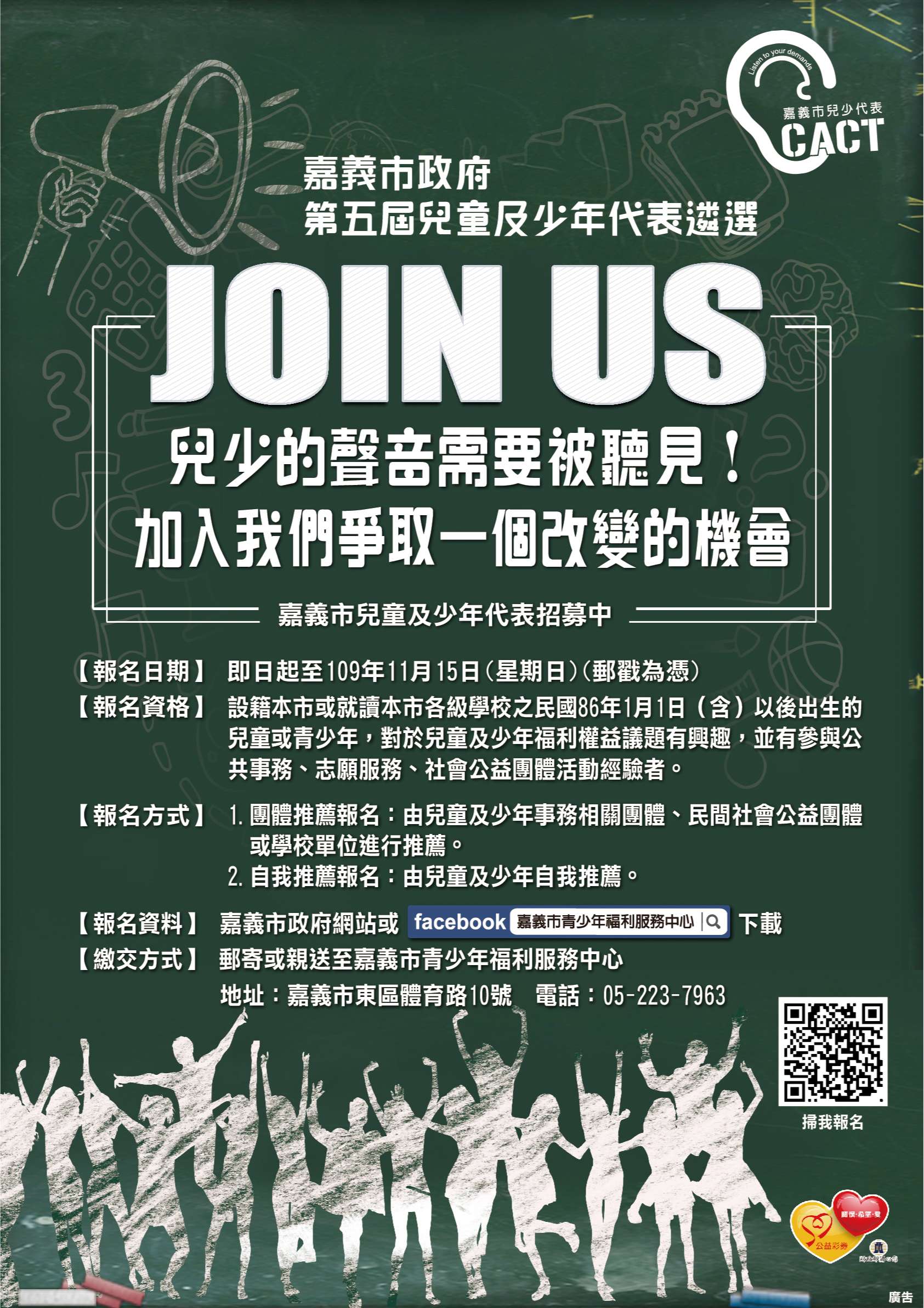 二、遴選資格:設籍或就讀本市各級學校,民國86年1月1日(含)以後出生之兒童或青少年,關心兒童及少年福利暨權益議題且有興趣,並具有參與公共事務、志願服務或社會公益團體活動之經驗者。