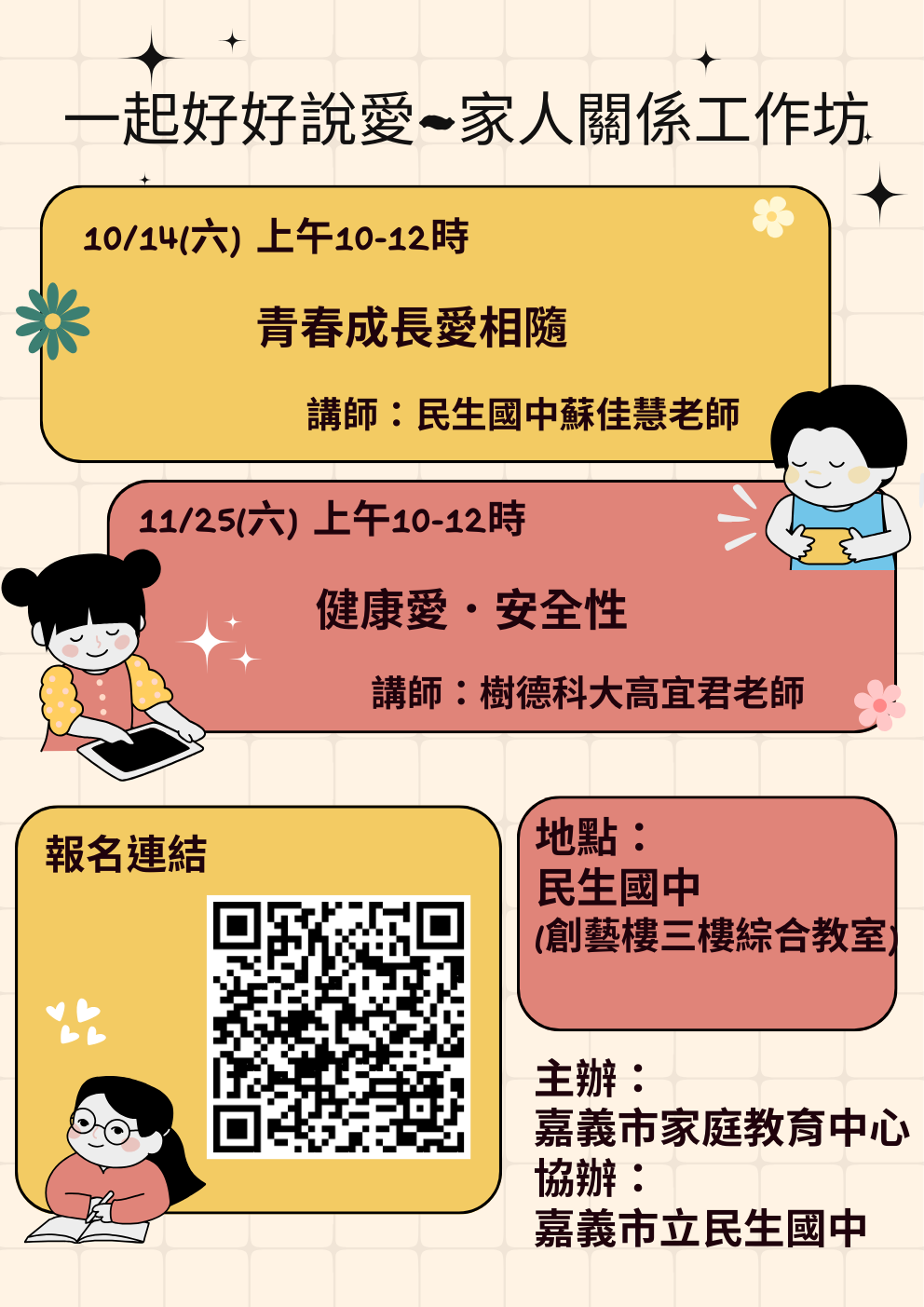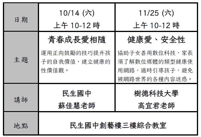 嘉義市家庭教育中心、民生國中輔導處敬邀
