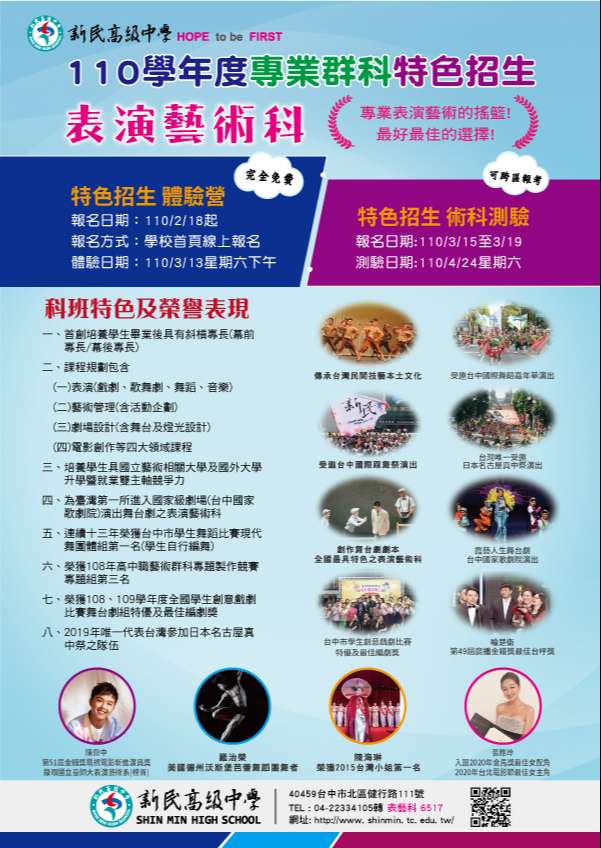 五、聯絡電話04 22334105註冊組分機6178、表演藝術科分機6517。