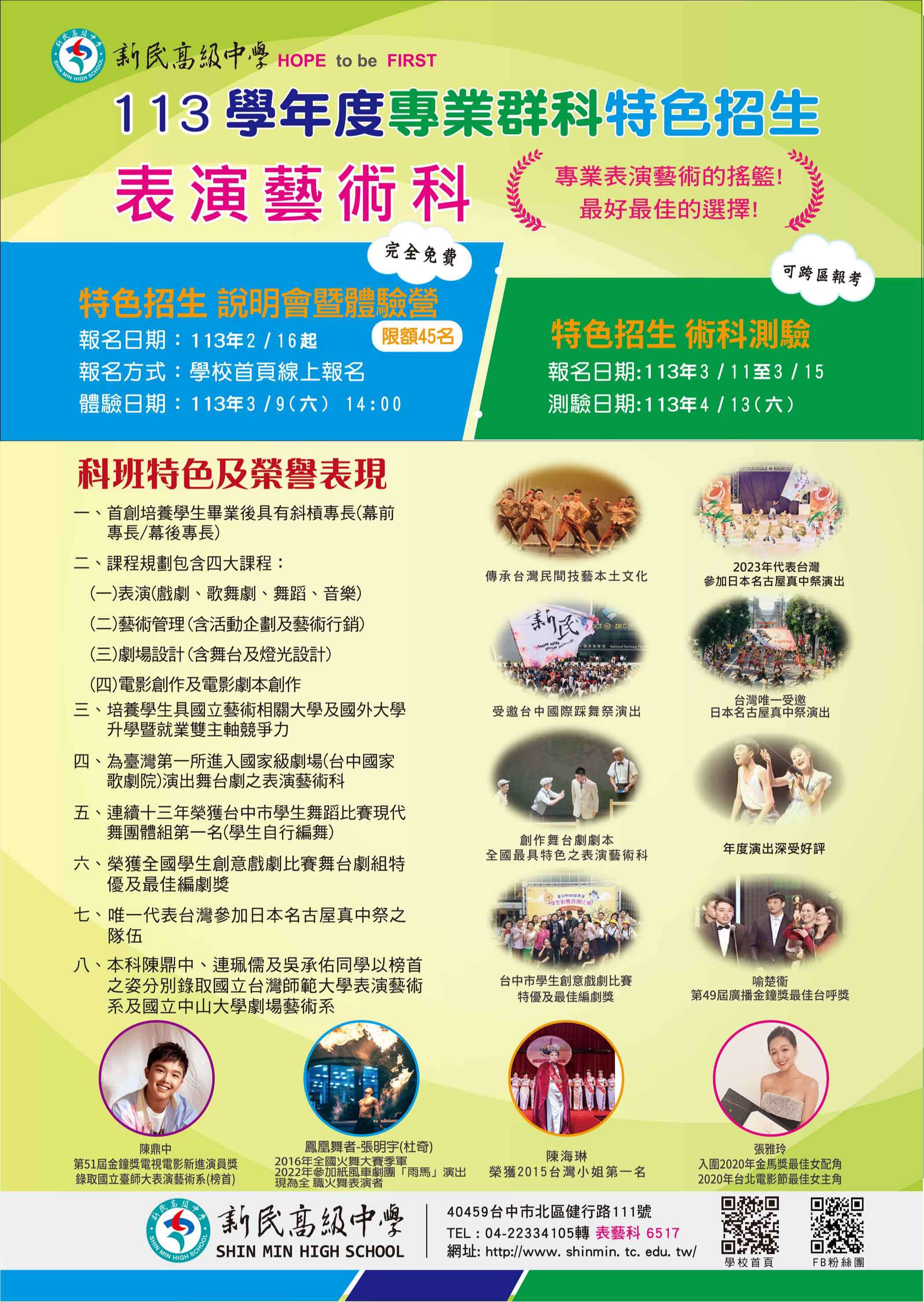 五、聯絡電話04 22334105註冊組分機6178、表演藝術科分機6517。