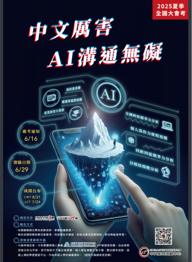 2025中文能力測驗中心夏季全國大會考」將於2025年6 月29日舉辦:
