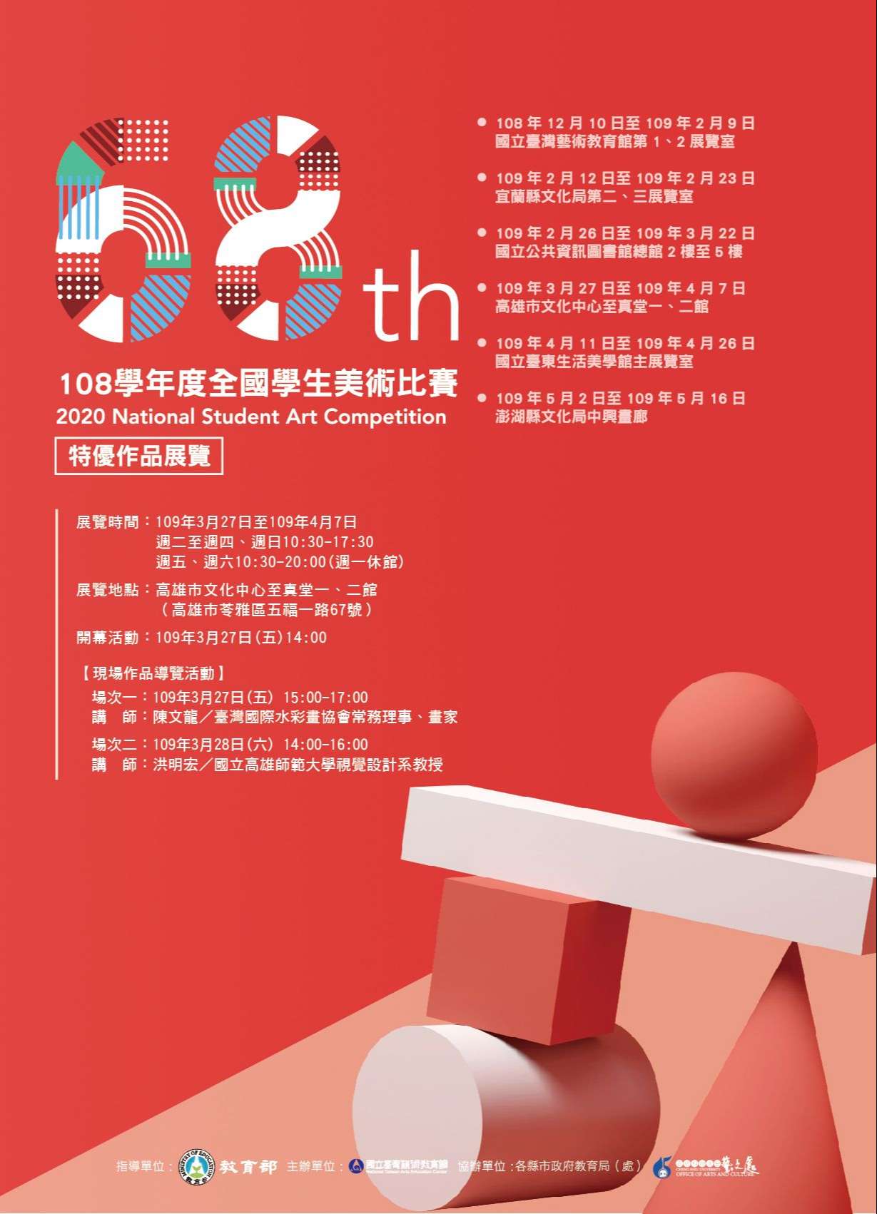 一、巡迴展於109年3月27日至4月7日假高雄文化中心至真堂一、二館展出,請所屬師生踴躍參觀(海報詳如附件)。