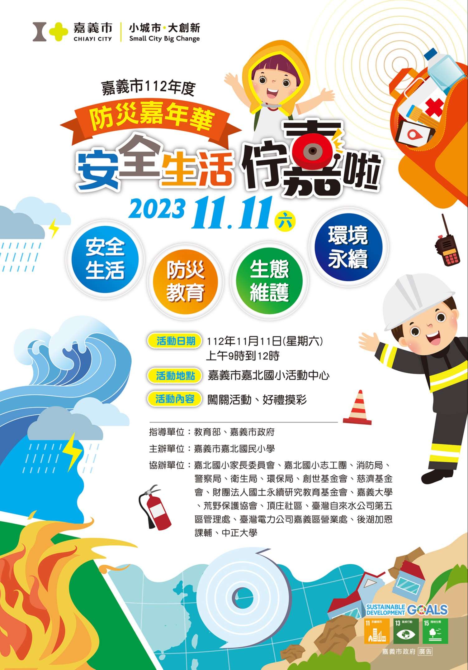 一、依據嘉義市政府112年10月3日府教國字第1121519121號函辦理。 二、實體海報乙張隨後以交換信箱送達各校(園所)。 三、當日闖關備有精美禮物及摸彩好禮,歡迎親師生踴躍參與。