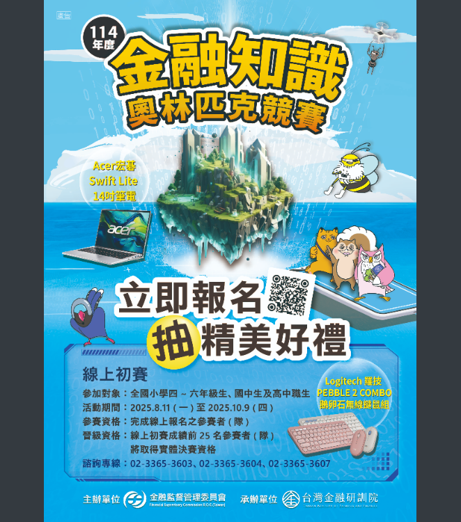 3、活動方式:分為國中個 人組、國中團體組、高中 職個人組、高中職團體組,線上初賽 後擇優進入 實體決賽。