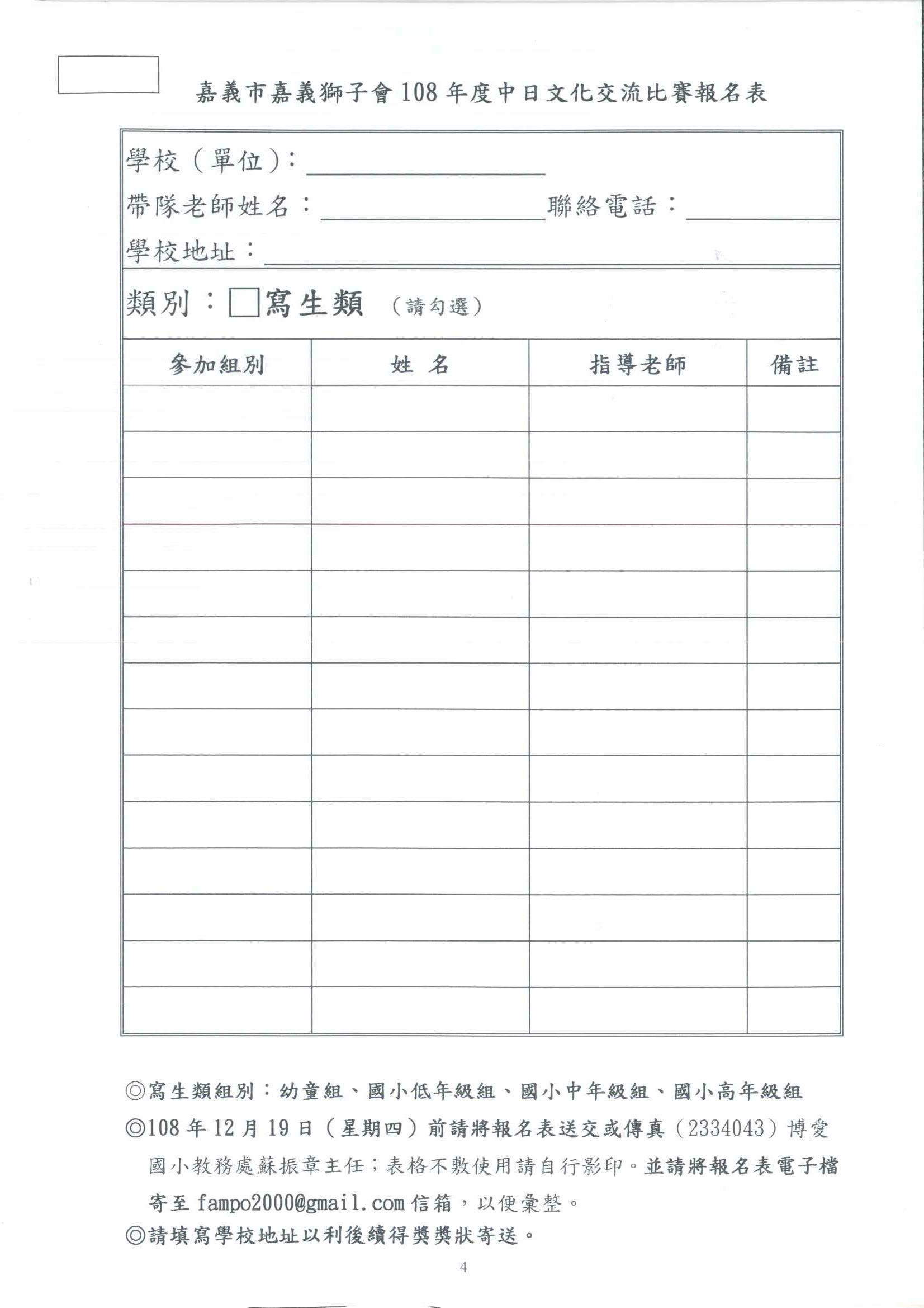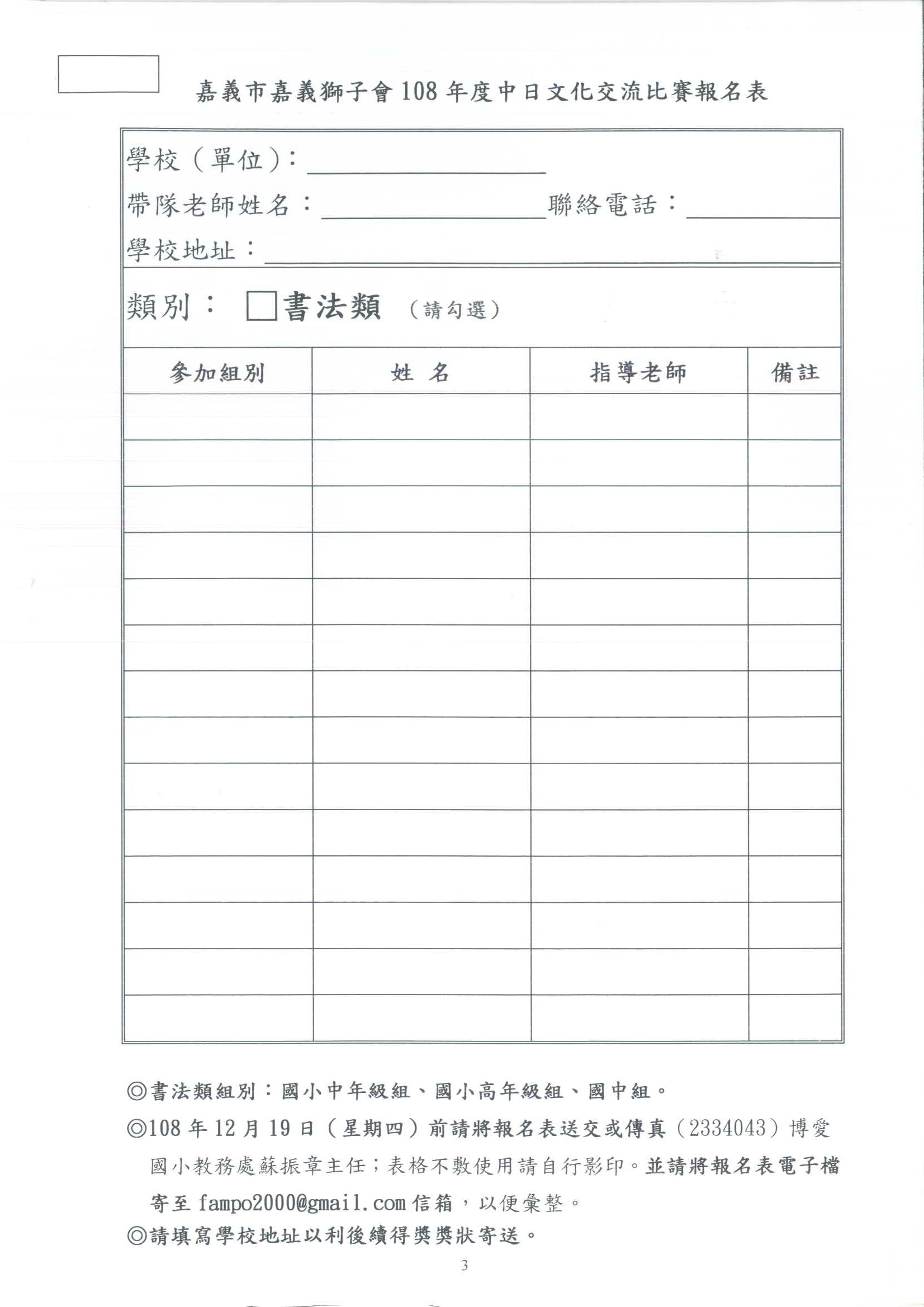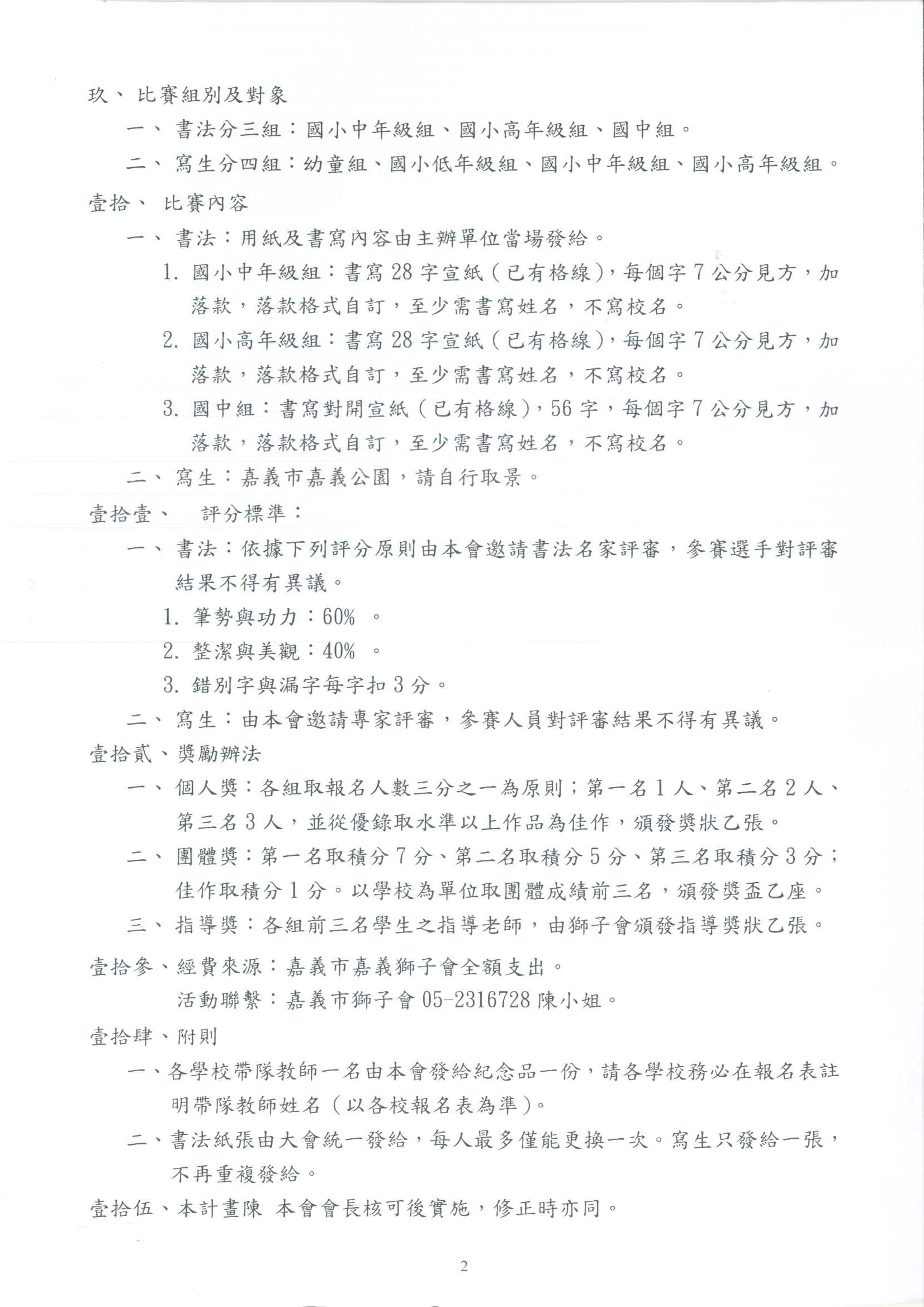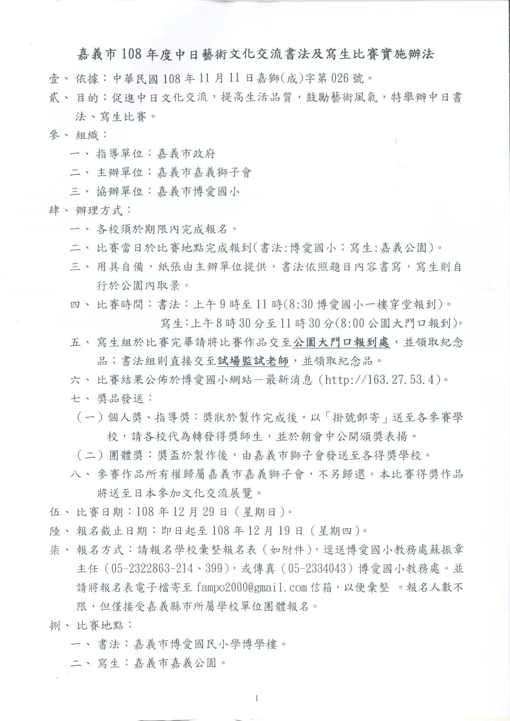 嘉義市嘉義獅子會舉辦「中日藝術文化交流書法、寫生比賽」實施辦法