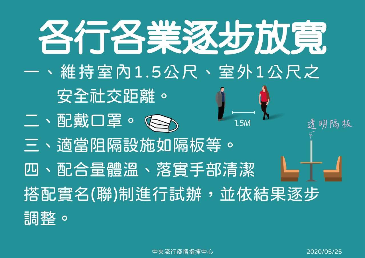 另外有關各行各業防疫放寬標準,可參考下列原則: