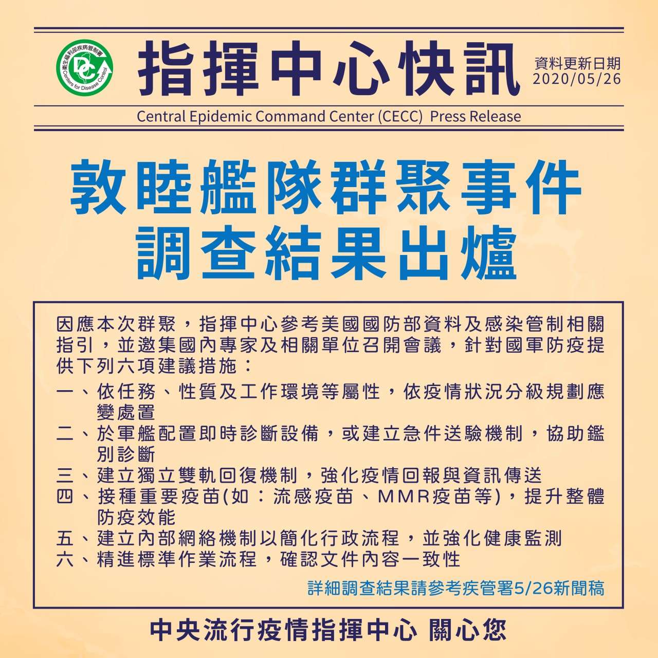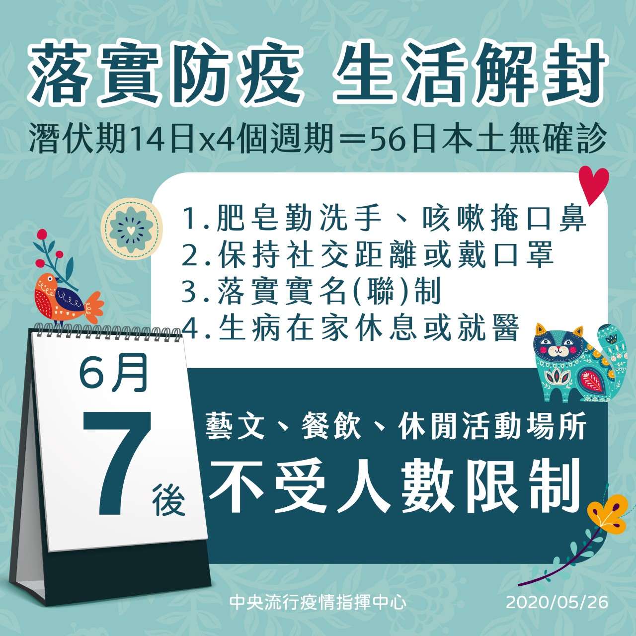中央流行疫情指揮中心今(26)日表示,考量國內COVID-19(武漢肺炎)疫情風險低,為了讓民眾順利恢復正常生活,規劃於6/7後鬆綁民眾生活防疫措施。
