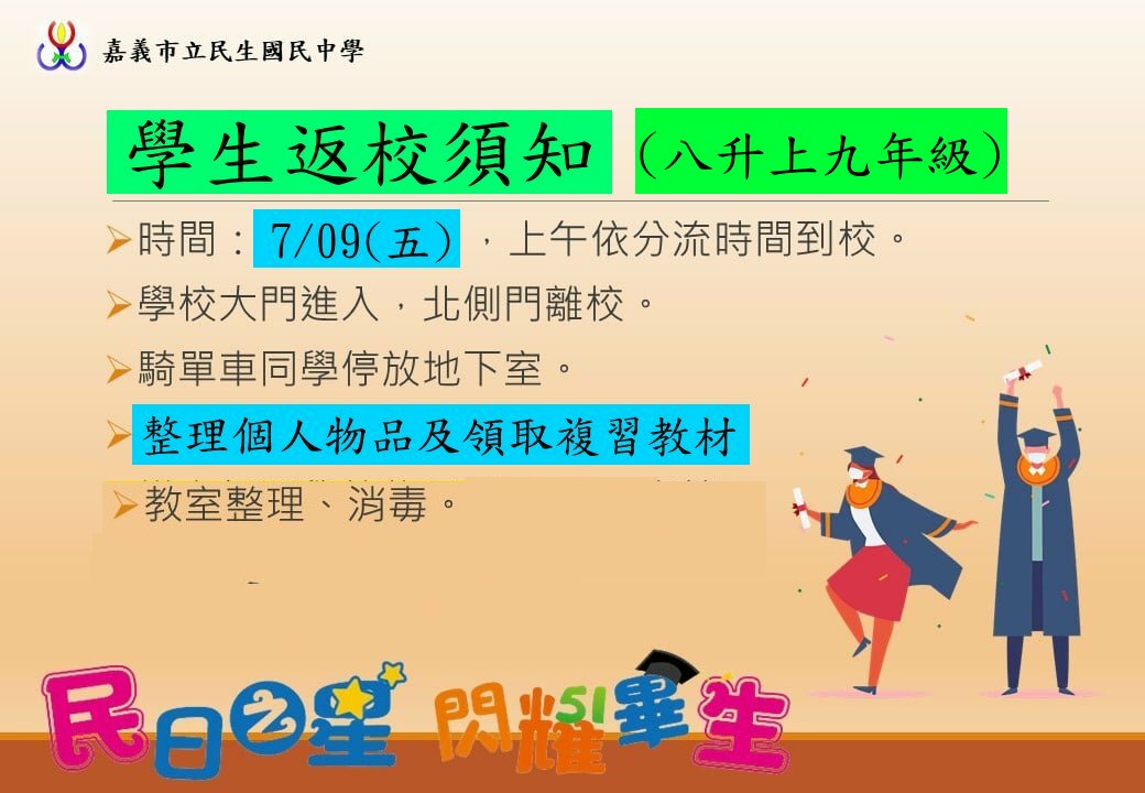 (7/09星期五上午8:00~12:00學生分流返校整理物品)