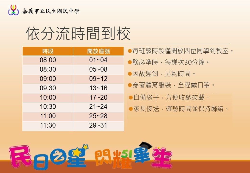 **學校安排7/09上午8:00~12:00 學生分流返校