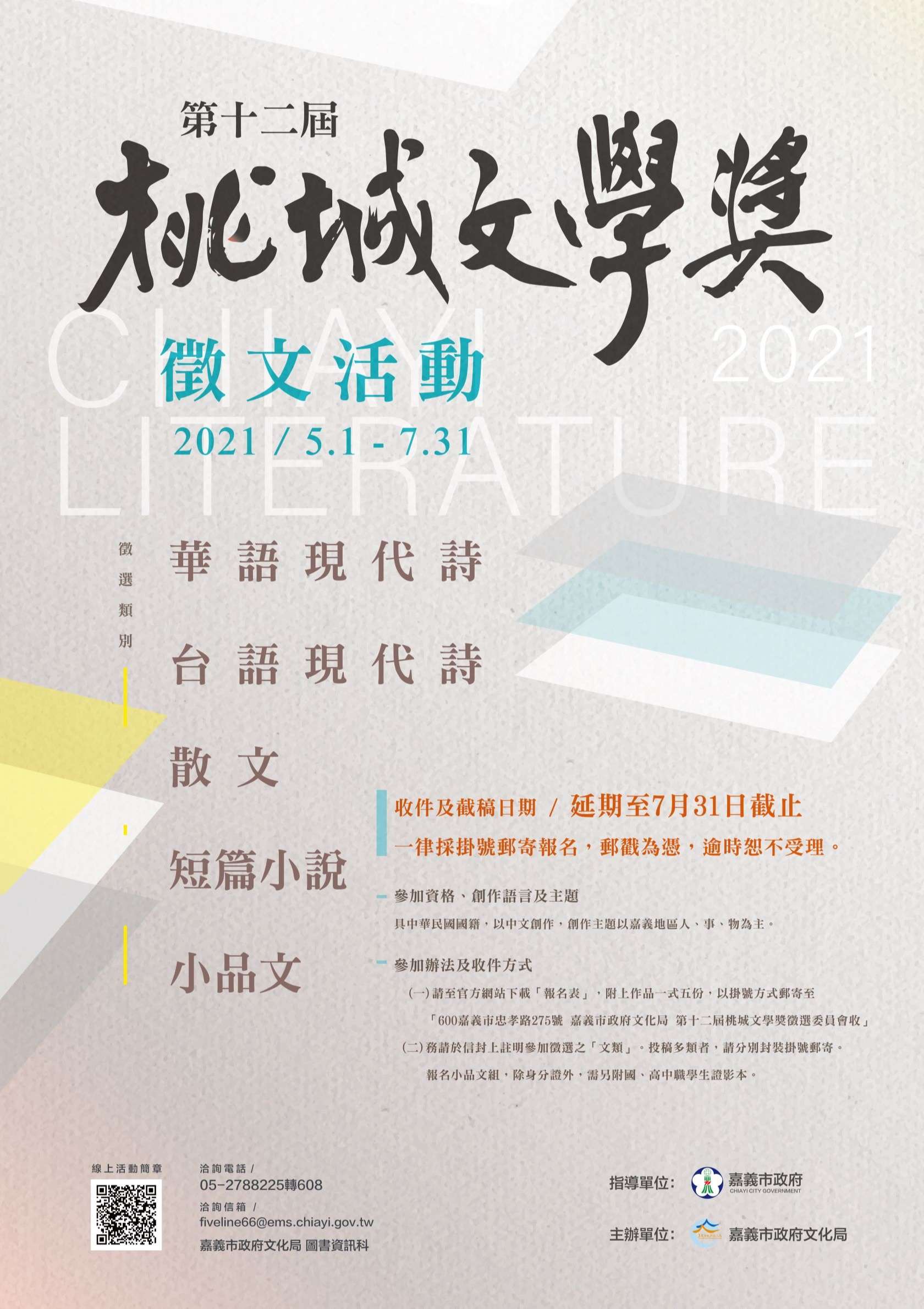 一、因考量新冠肺炎疫情影響,為使參賽者有更充裕的時間書寫創作,本年(110)度徵文活動延長至110年7月31日止。