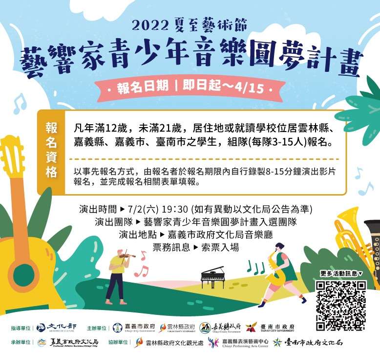 (三)聯絡單位:嘉義市政府文化局表演藝術科(600嘉義市忠孝路275號),電話:05-2788225#313 陳小姐。