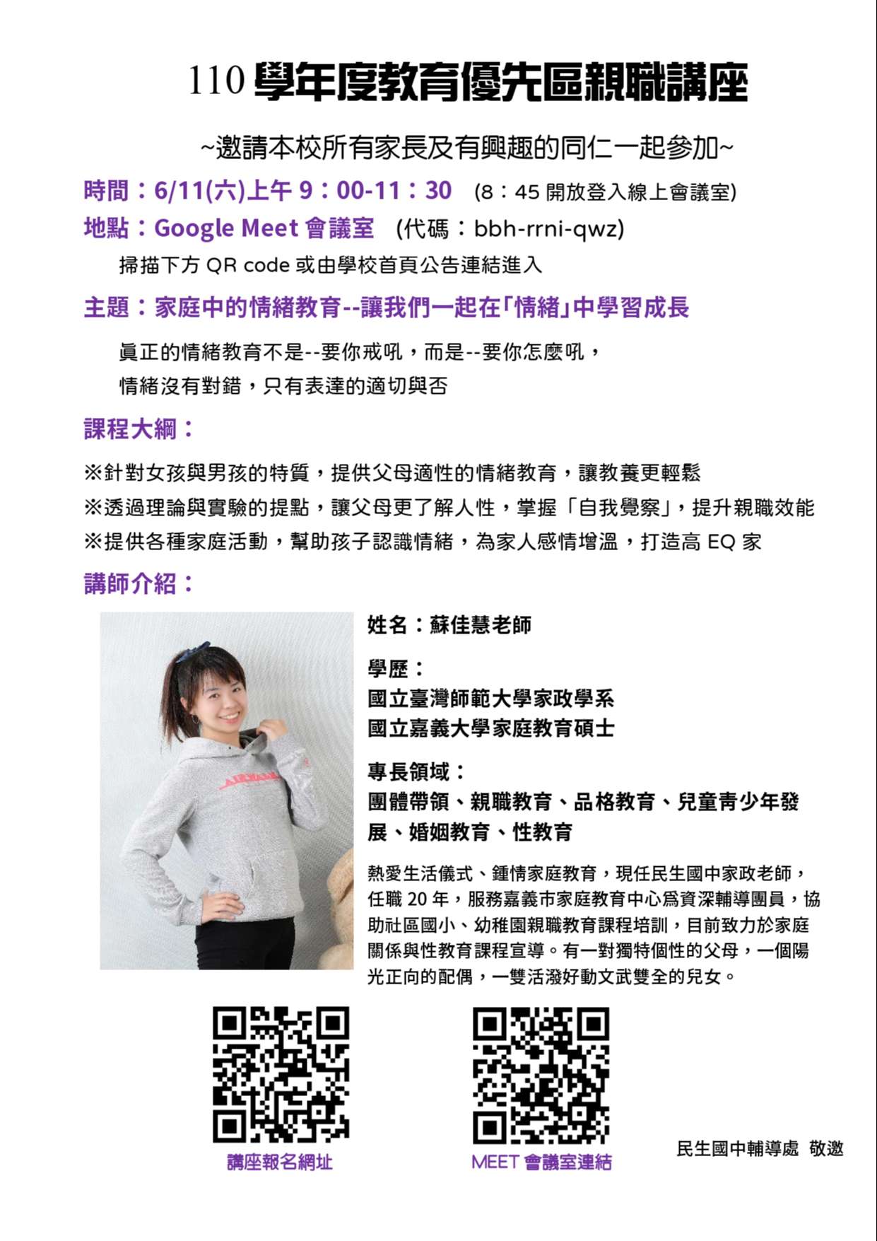 地點:Google Meet會議室 (代碼:bbh-rrni-qwz或由學校首頁公告連結進入)