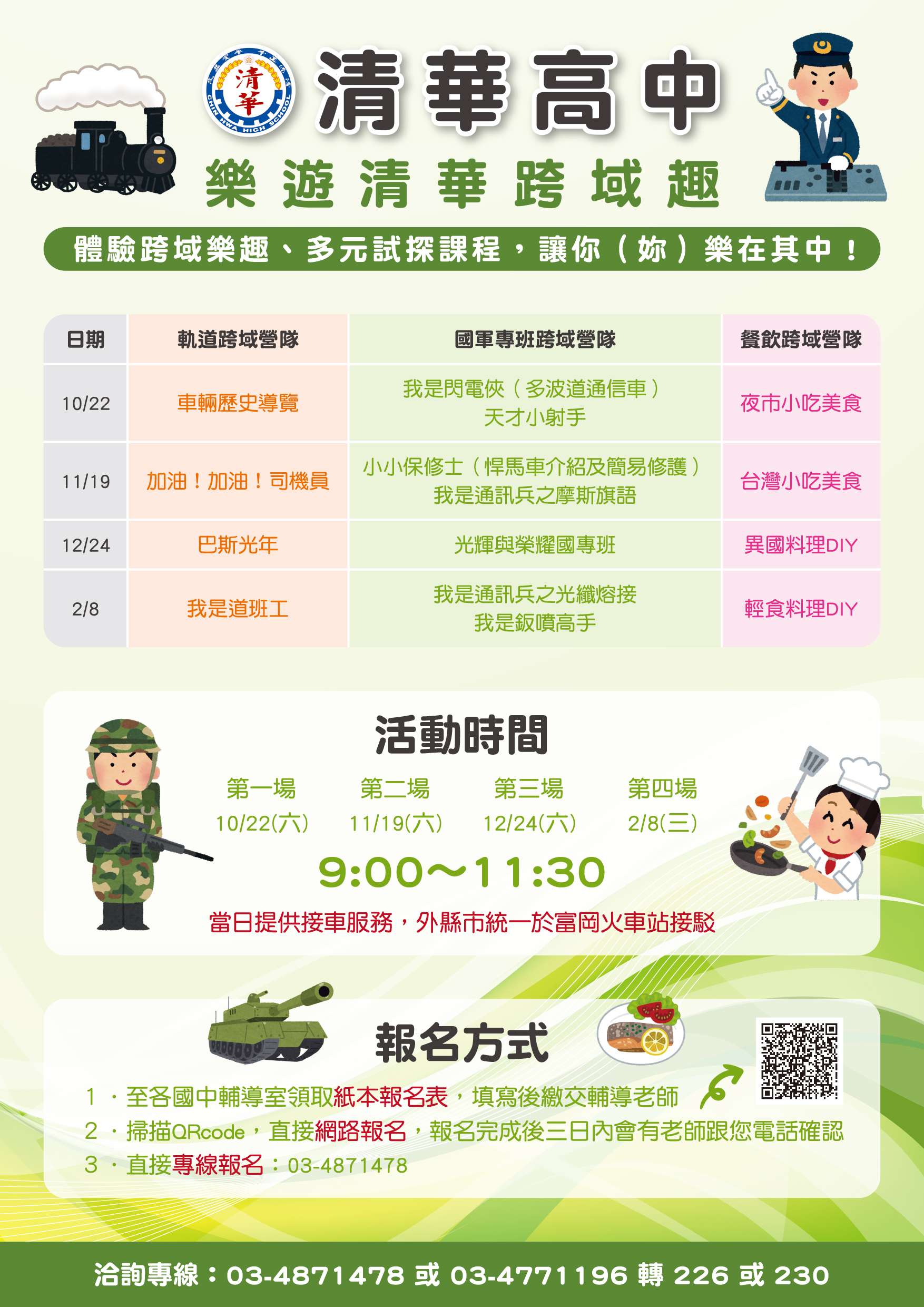 一、清華高中辦理「樂遊清華跨域趣」多元試探課程時間: