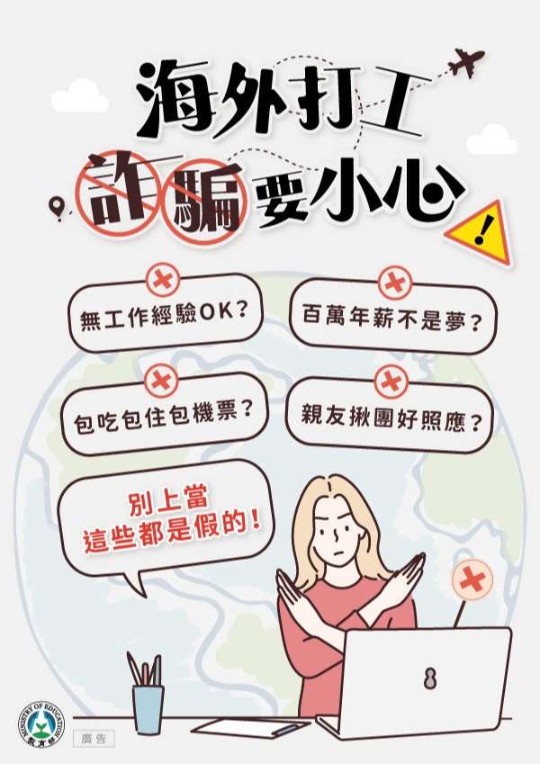 檢附教育部詐騙防制懶人包及電子文宣(如附件),請各校進行分齡分眾主題式反詐騙宣導。