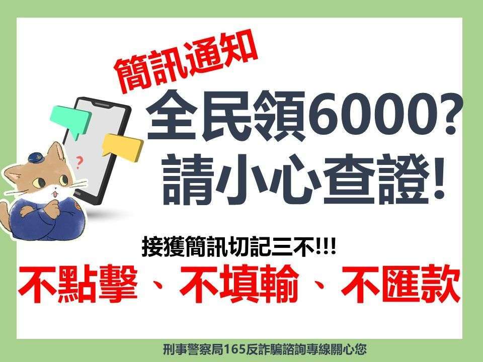 行政院尚未公告發送程序及時間,警方亦未接獲相關報案,仍請各位朋友提高警覺!
