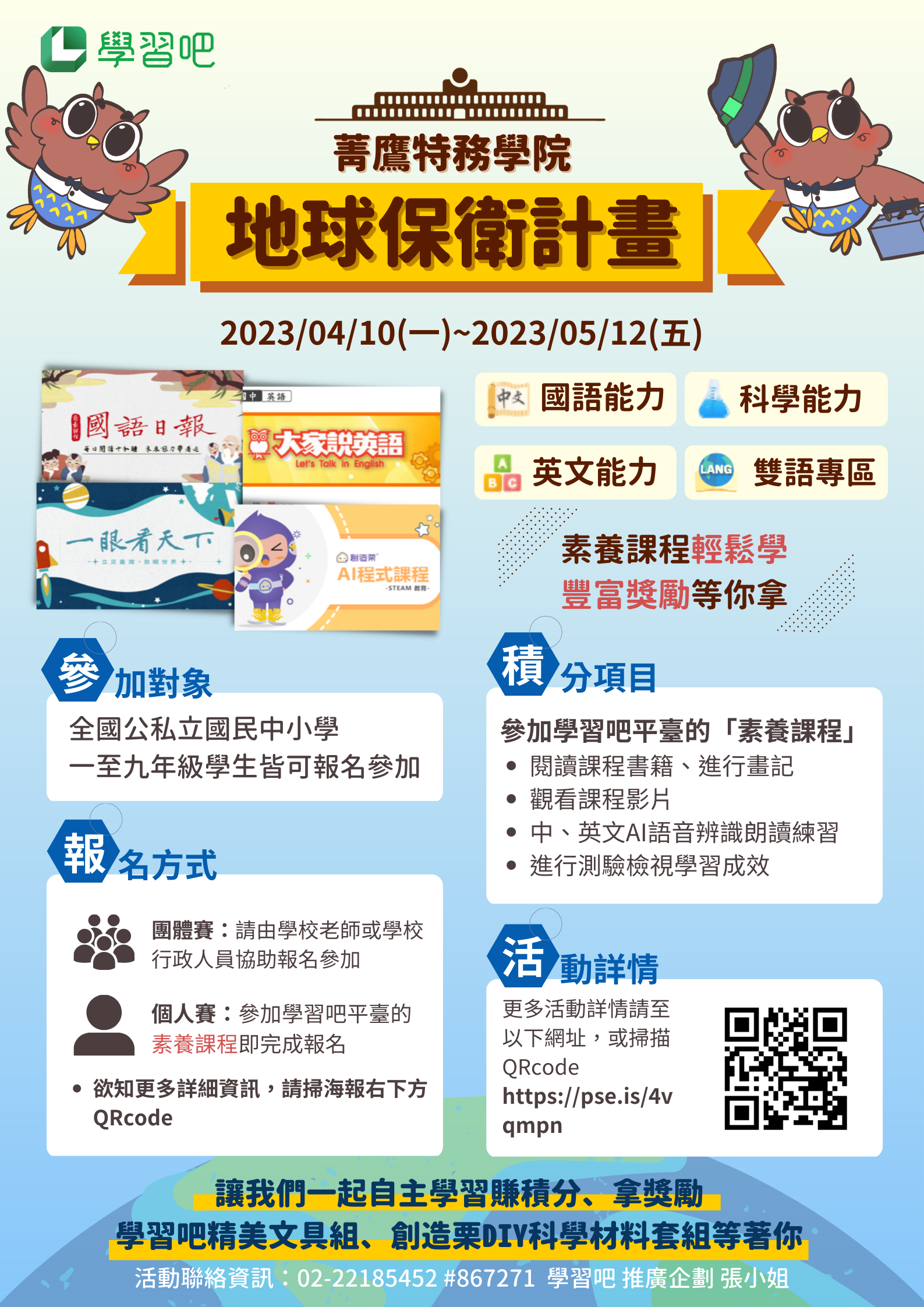 辦理「菁鷹特務學院-學生線上學習活動」,