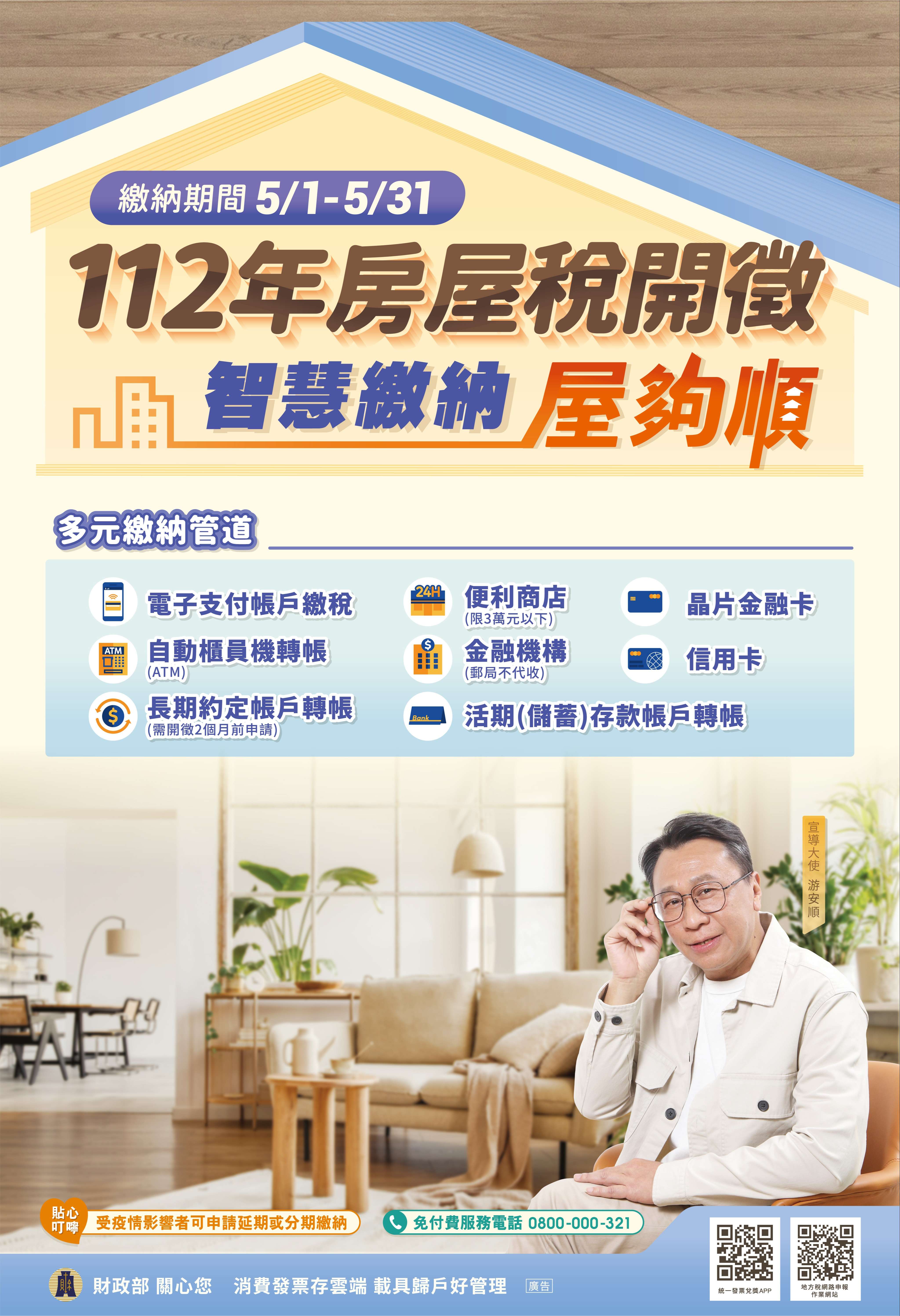 (一)112年房屋稅於5月1日開徵,繳納期限至5月31日止。
