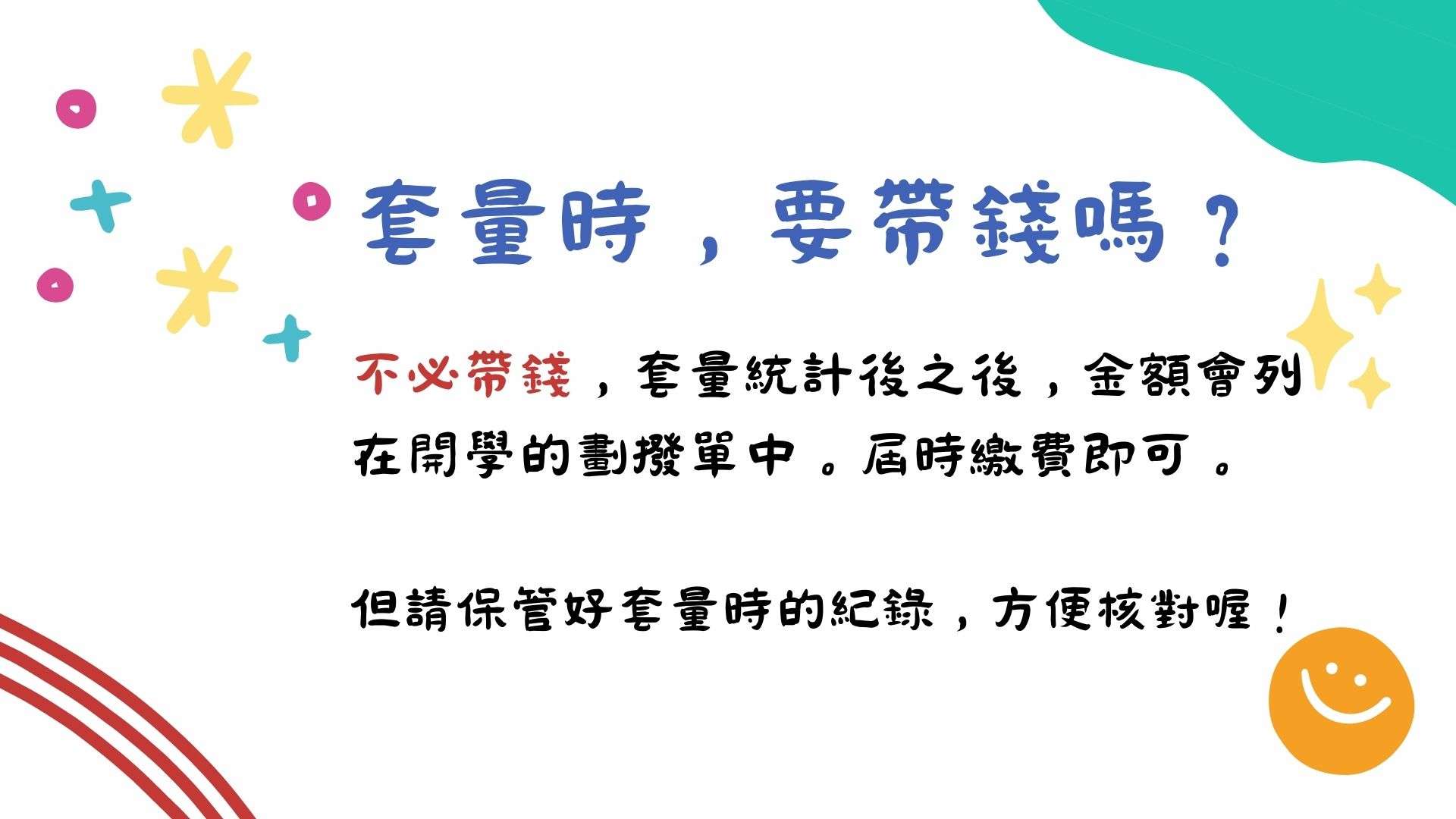 二、新生套量服裝時,不需帶錢,只需留存好套量單據供核對,費用將列入註冊劃撥單。