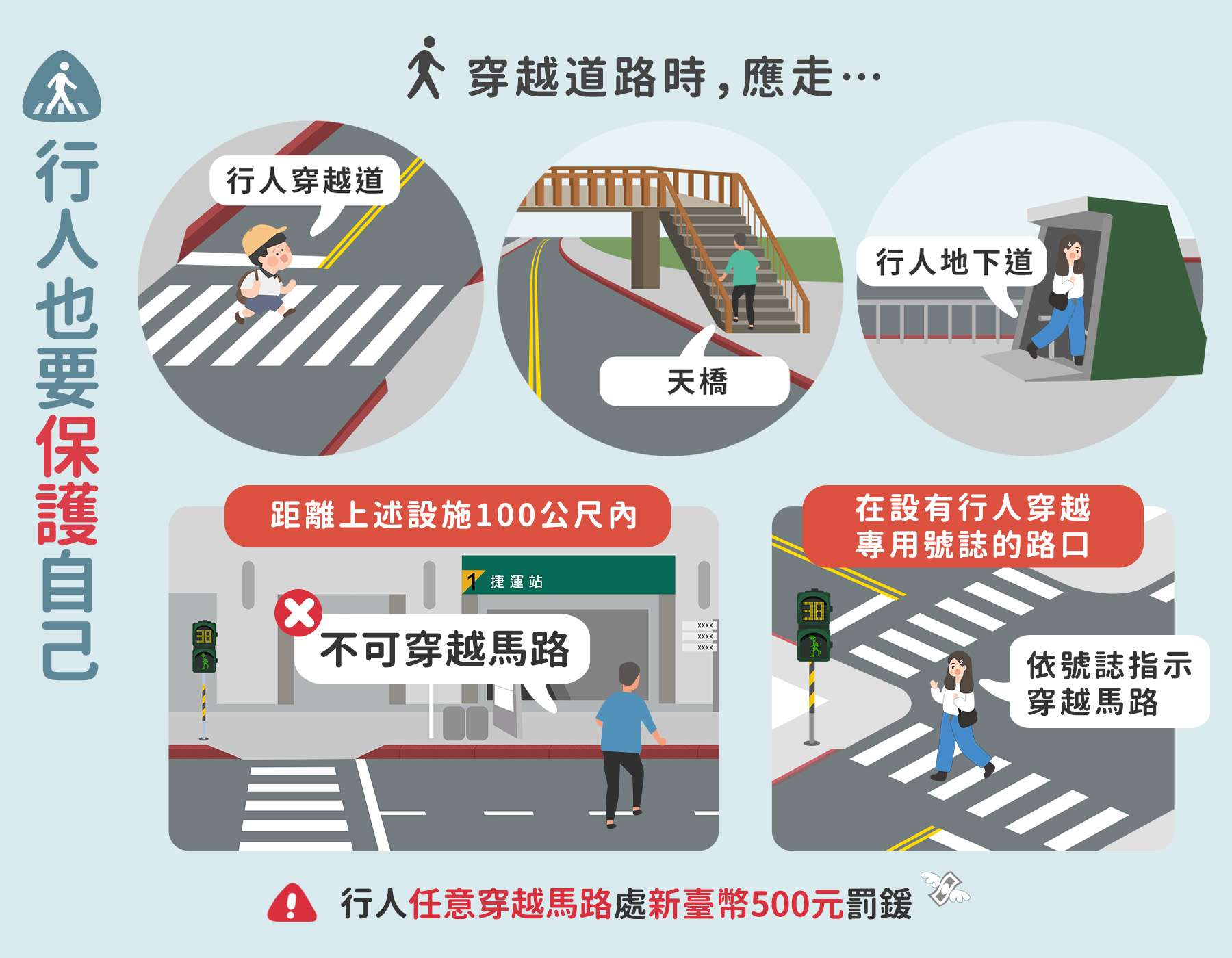 二、相關文宣素材資料可逕交通部交通安全入口網(https://168.motc.gov.tw)/首頁/行人安全下載專區banner下載使用。