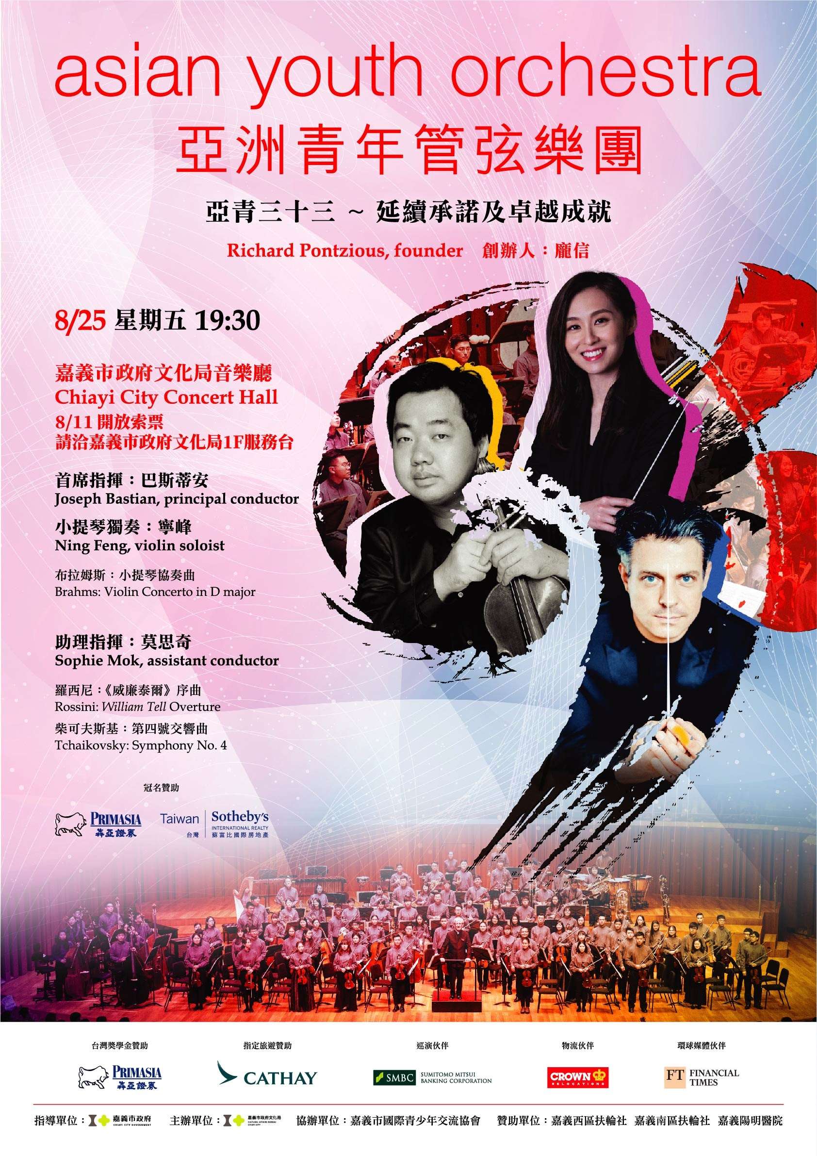 一、音樂會日期:112年8月25日(五)下午19時30分。 二、地點:嘉義市政府文化局音樂廳。 三、演出團隊:亞洲青年管弦樂團。