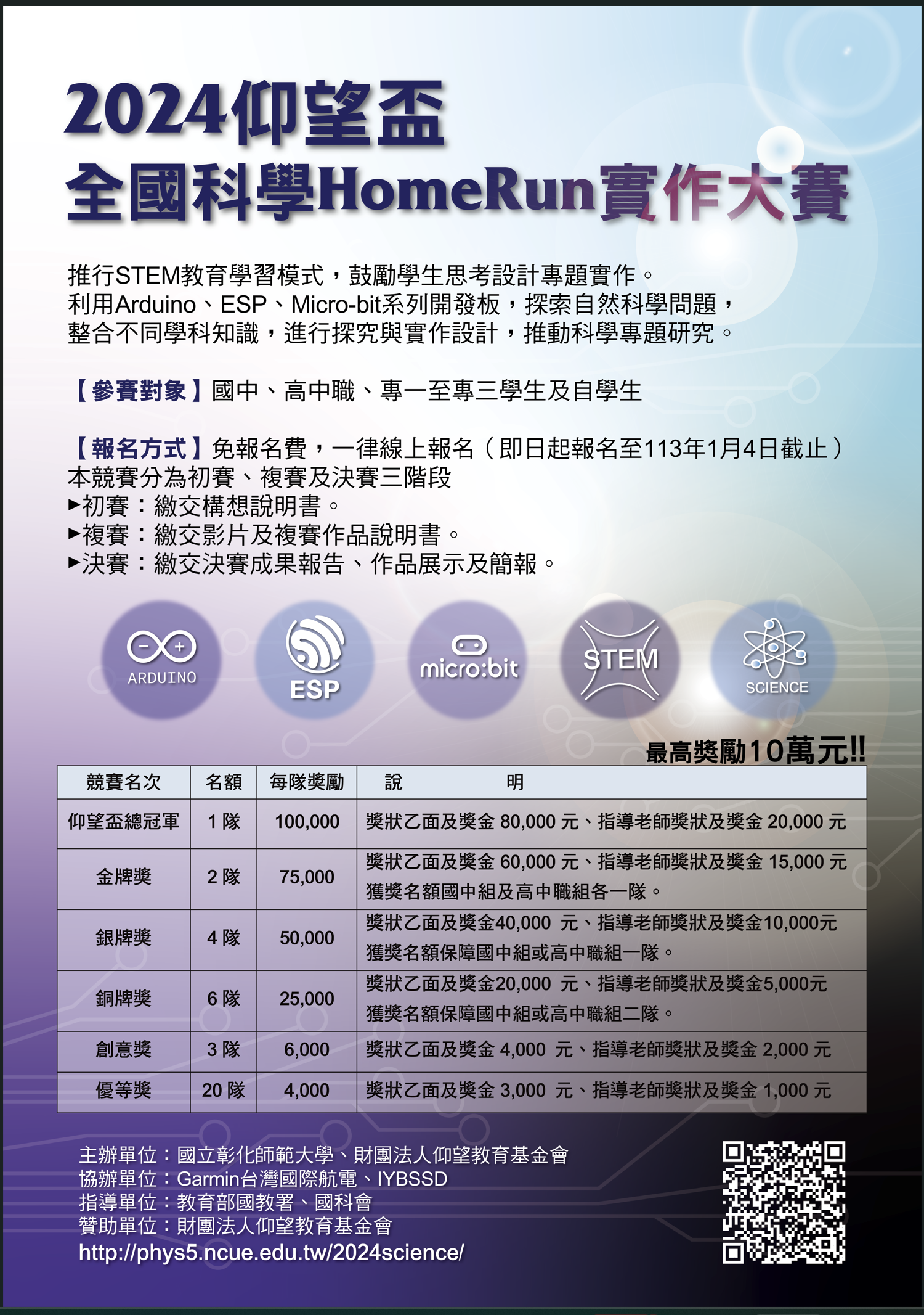 一、依據國立彰化師範大學112年10月25日物理字第1123200717號函辦理。 二、檢附競賽手冊及海報各1份。