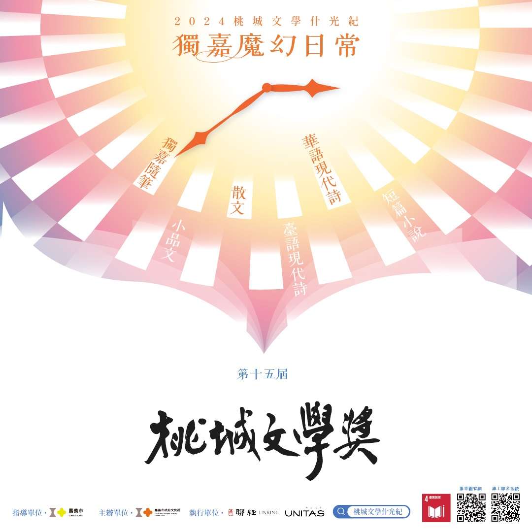 一、本屆桃城文學獎徵文時間至7月31日止,本次徵文共分六類組:華語現代詩、台語現代詩、散文、短篇小說、小品文(限定嘉義縣市國、高中職生或曾就讀嘉義縣市國中、小之外縣市國、高中職學生)。採網路報名(https://reurl.cc/yYQQAy)或紙本郵寄,請擇一方式報名即可,詳情請見徵文簡章(https://pse.is/5uwt9r)。