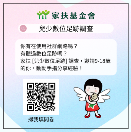 財團法人台灣兒童暨家庭扶助基金會,邀請兒童及少年填寫家扶基金會【兒少數位足跡調查】問卷