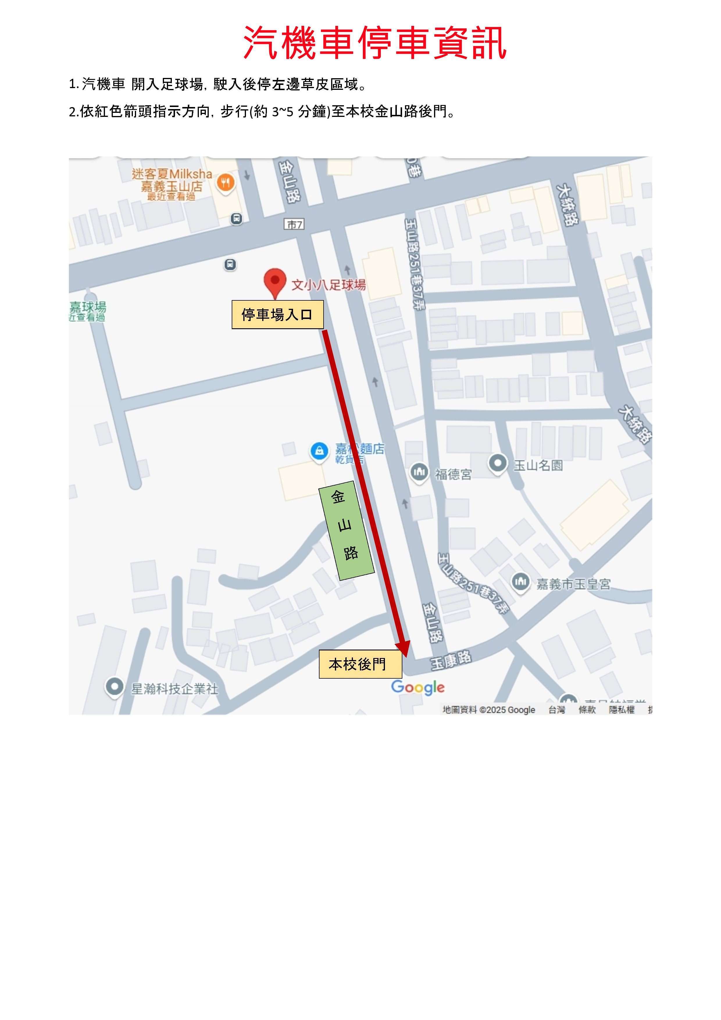 註: 玉山國中因前庭地坪工程,大門封閉,請所有考生一律由玉山國中後門(金山路底)進入。